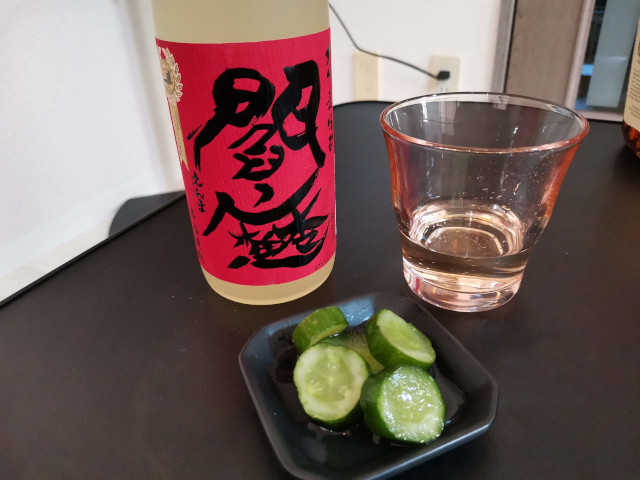 きゅうりの浅漬けと麦焼酎